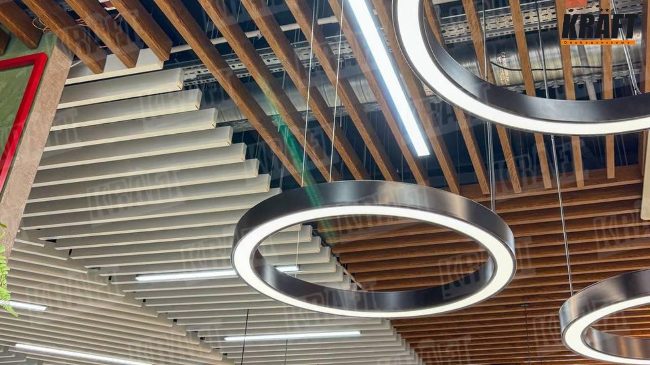 The restaurant is a vivid example of how modern design solutions can transform an interior into a striking architectural feature. The KRAFT cubic rail has proven that a suspended ceiling can be more than just a technical element — it can become a central accent that defines the style of the entire space.