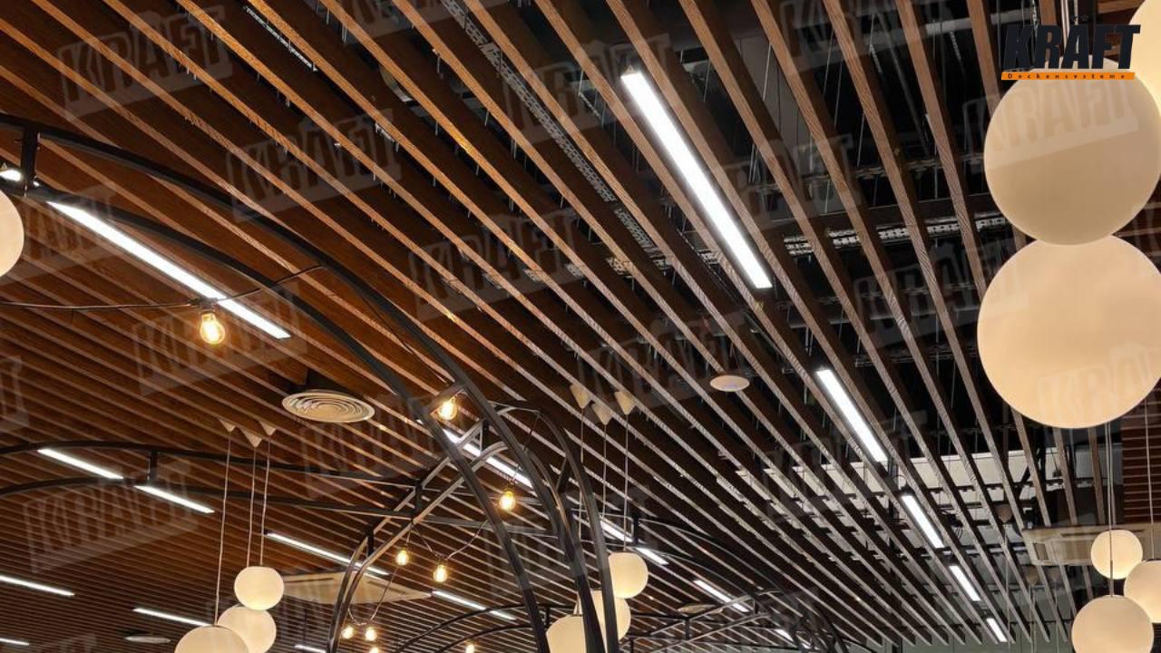• Improved acoustics. In spacious dining areas, noise can be an issue. The rail ceiling helps absorb and diffuse sound, ensuring a comfortable environment for conversation.