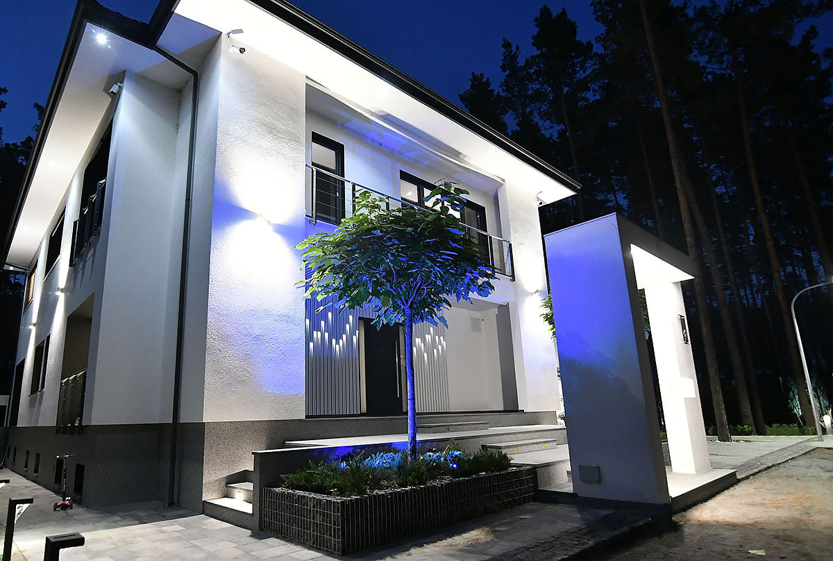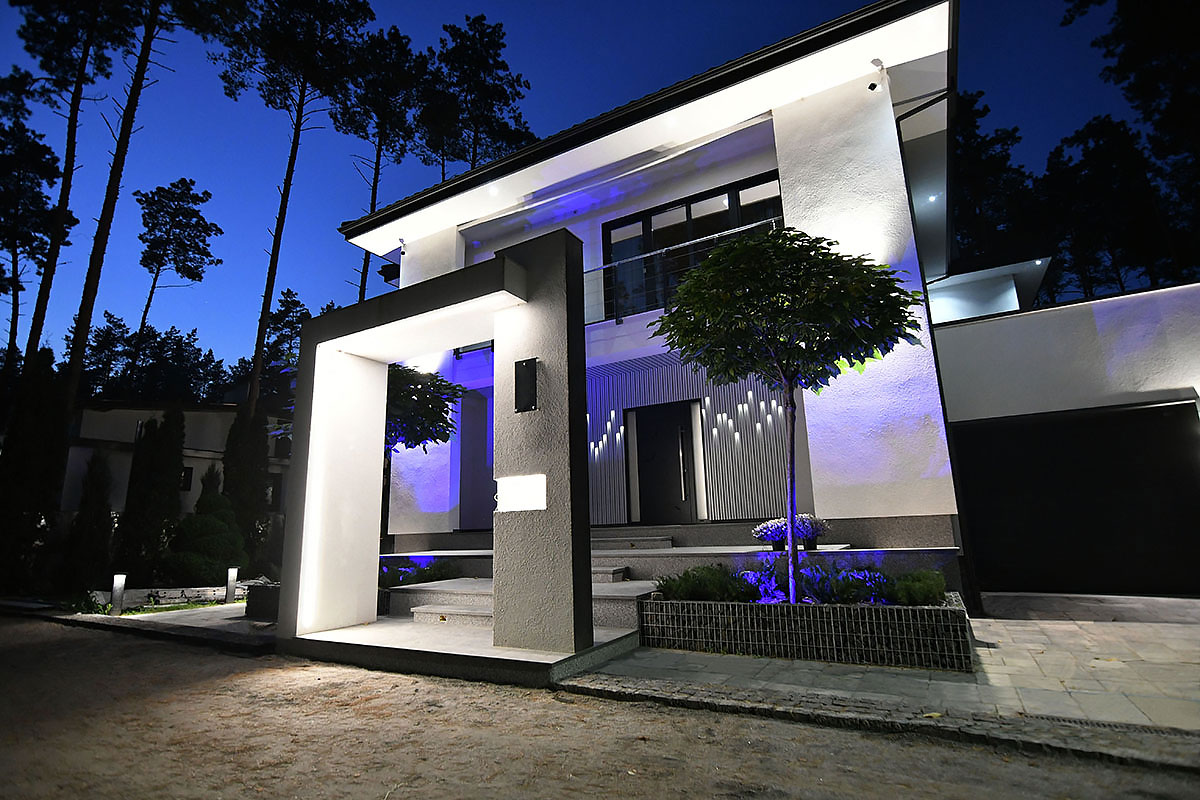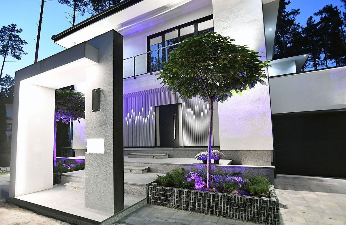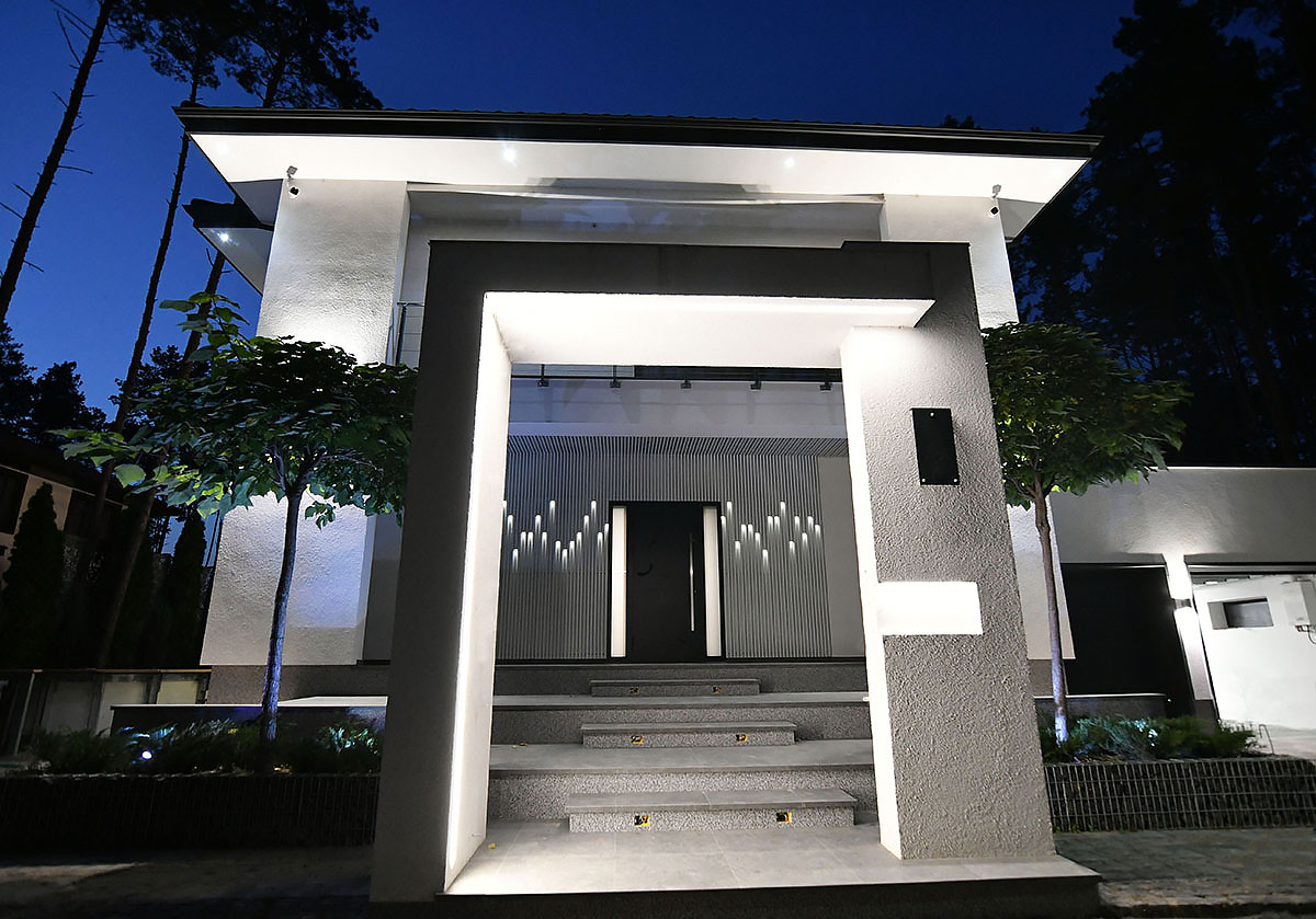Entrance group from a cube-shaped rail with illumination in a private house (+13 photos)