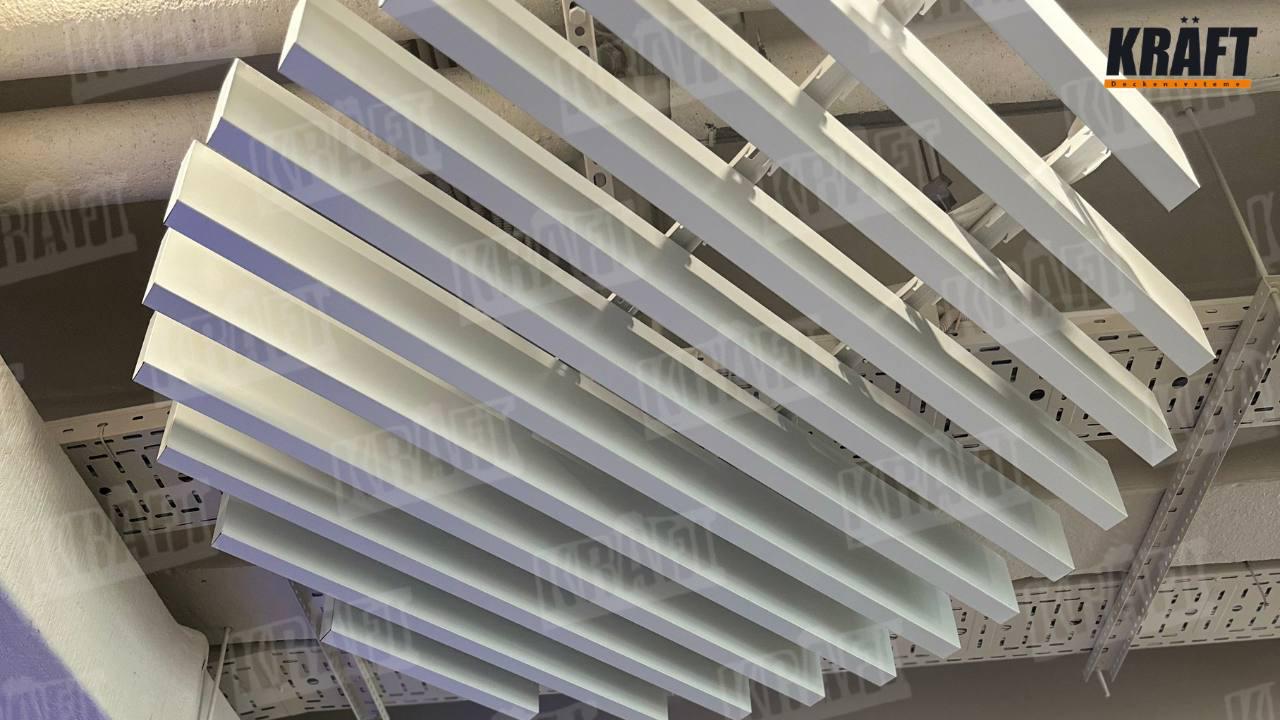 In addition to aesthetics, the KRAFT ceiling has practical significance. In the conditions of a large commercial space, it is important that the interior not only “looks” but also works: