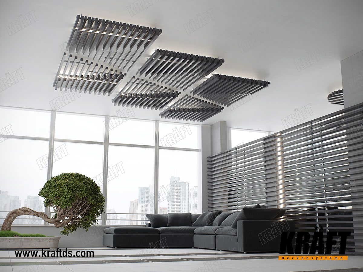 Ideas for the design of linear strip ceiling - vary the length, width, height