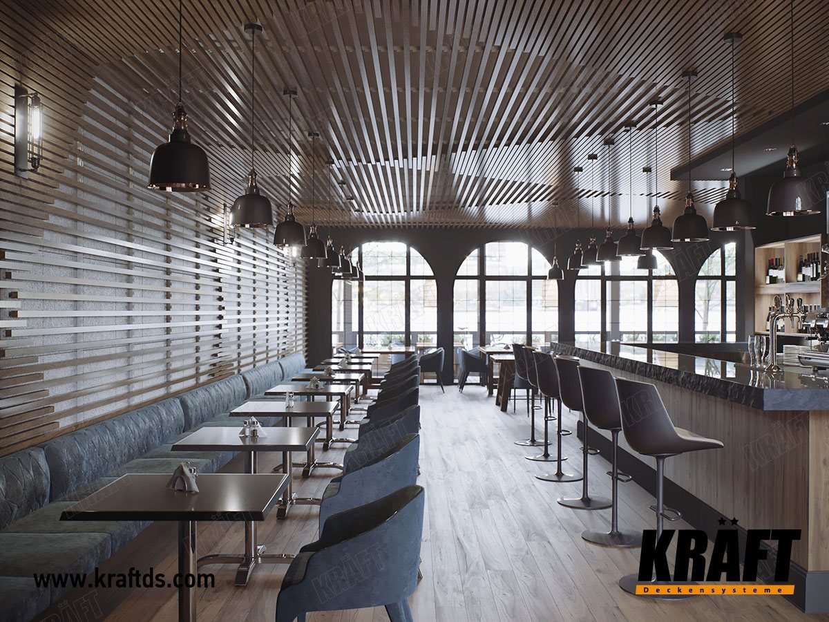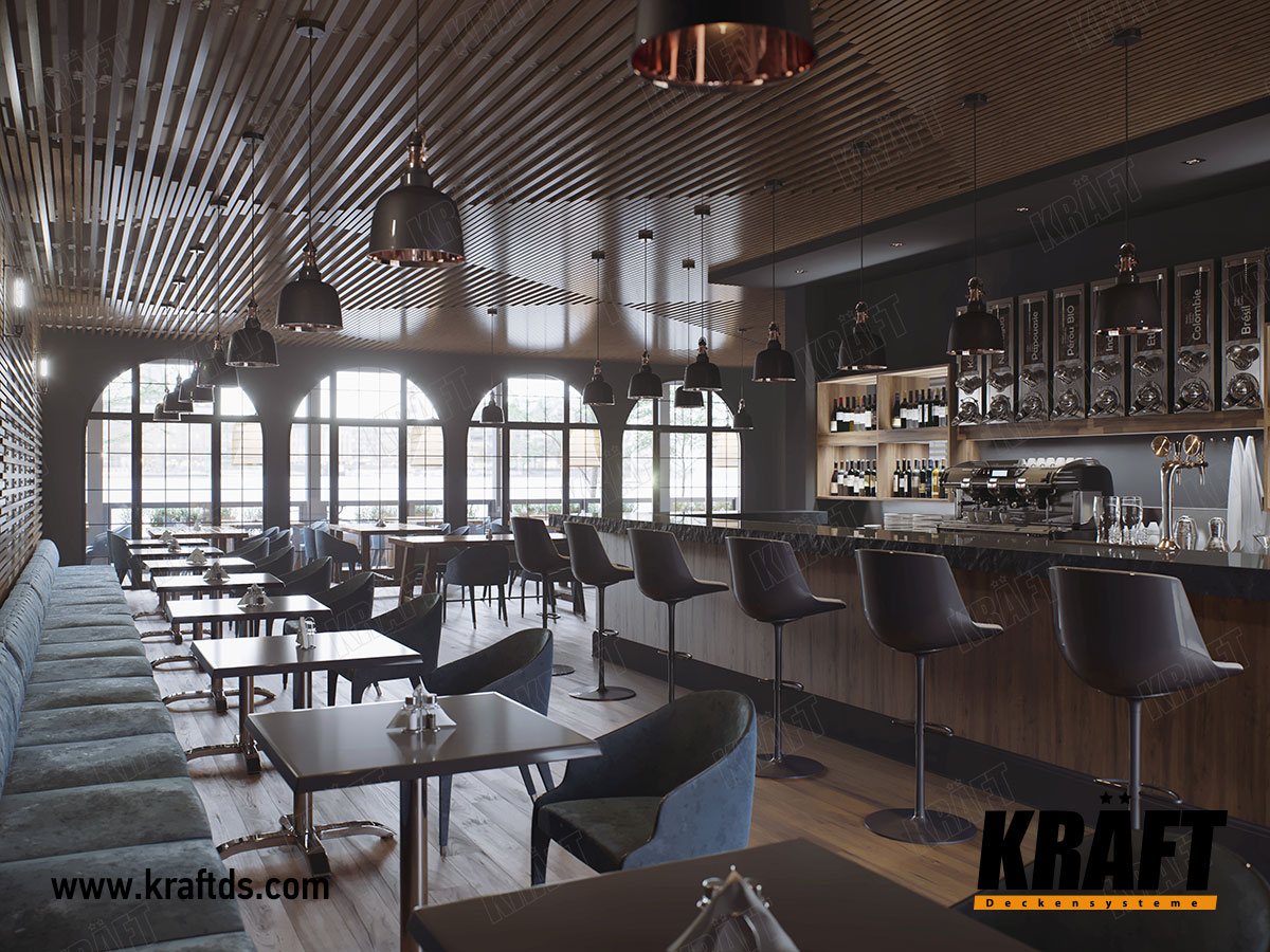 Представляємо оригінальний варіант використання кубічної рейки KRAFT з використанням індивідуальних кріплень в інтер'єрі ресторану