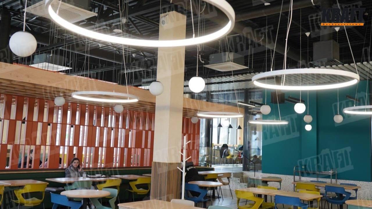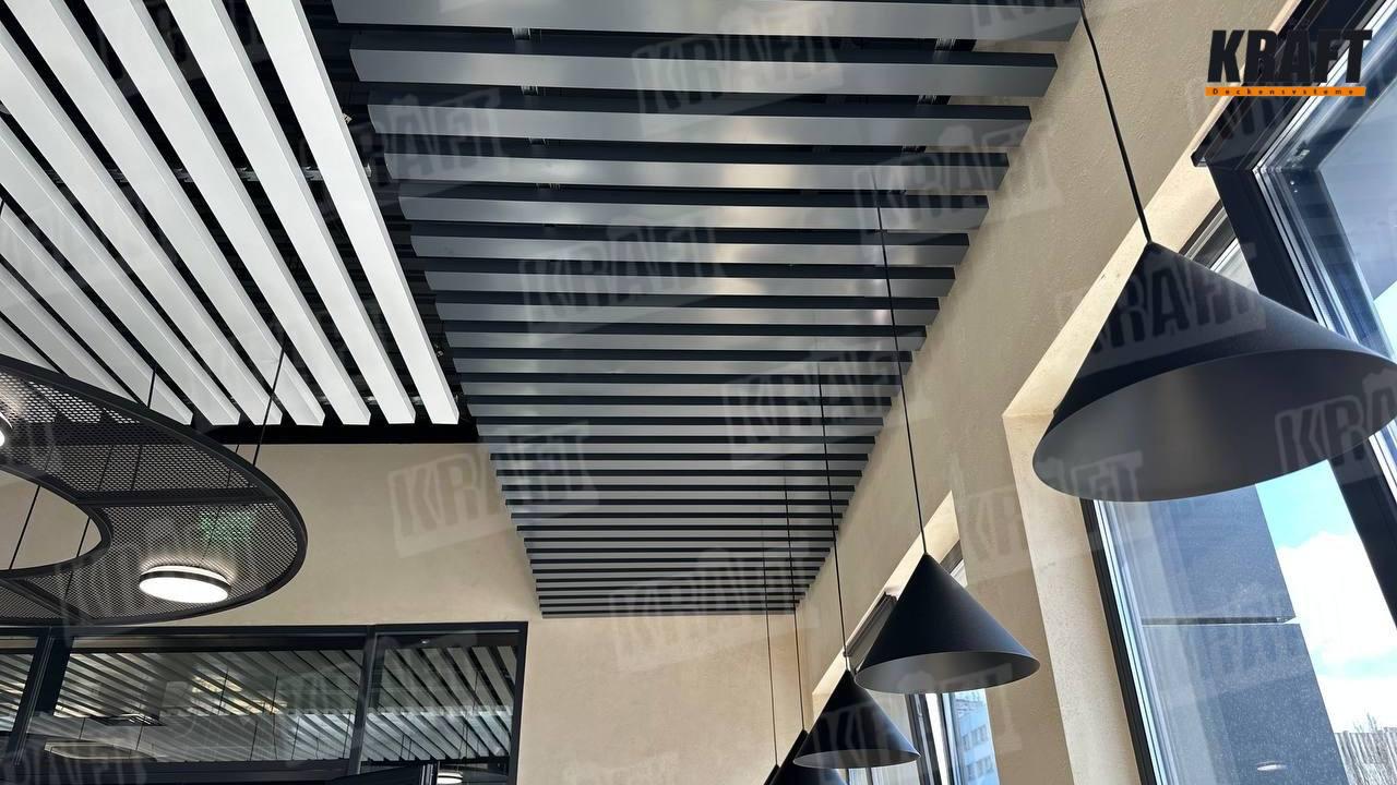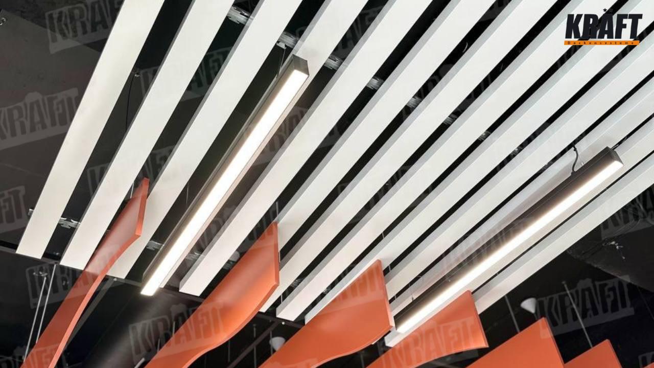 Successful establishments know this — and choose smart, modern solutions. Like the linear suspended ceilings from KRAFT, which became a key interior element at the Puzata Hata restaurant near Chernihivska metro station.