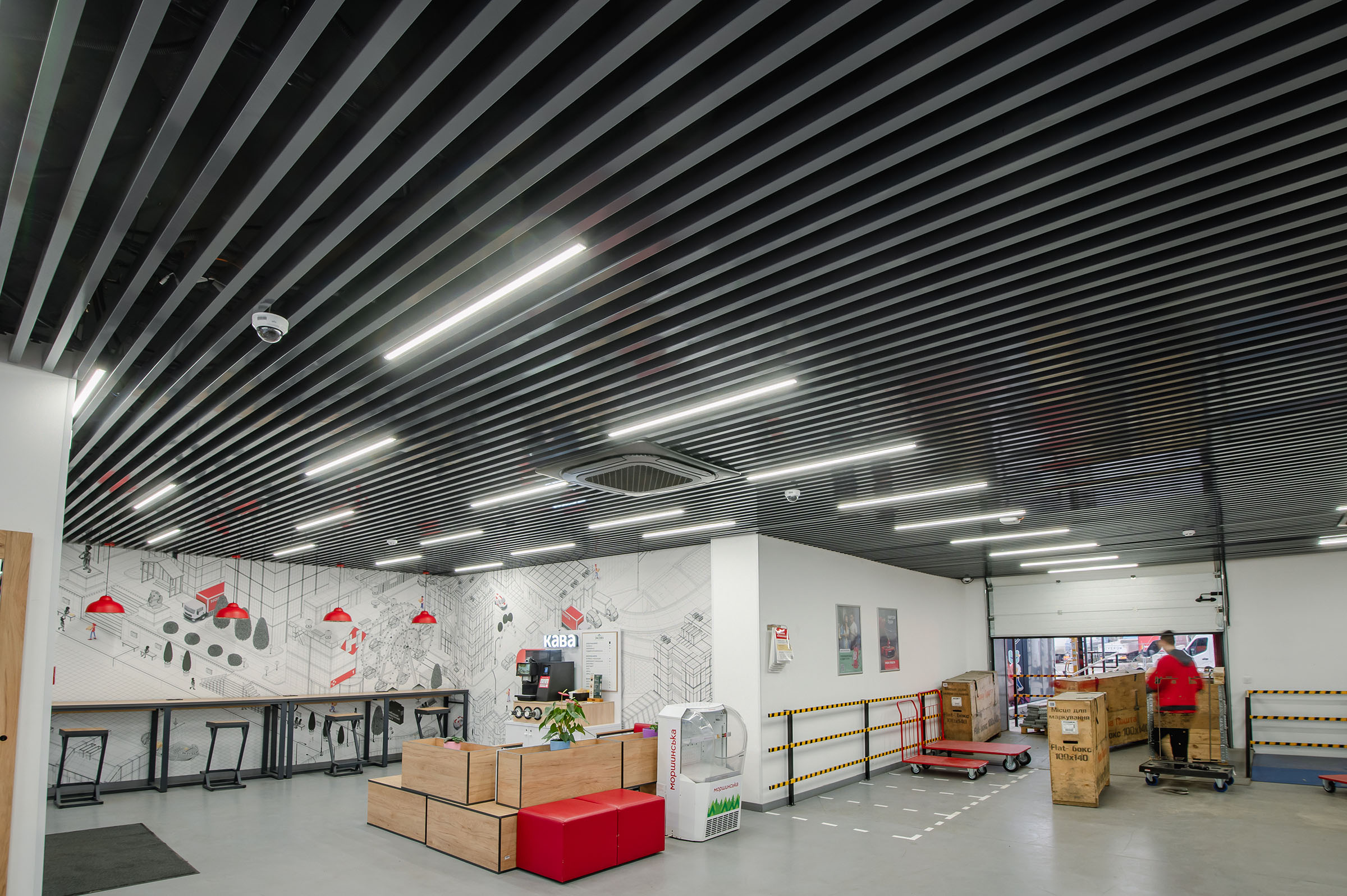 If you want to impress your customers with the interior of your office, then KRAFT linear strip ceiling will be an excellent solution