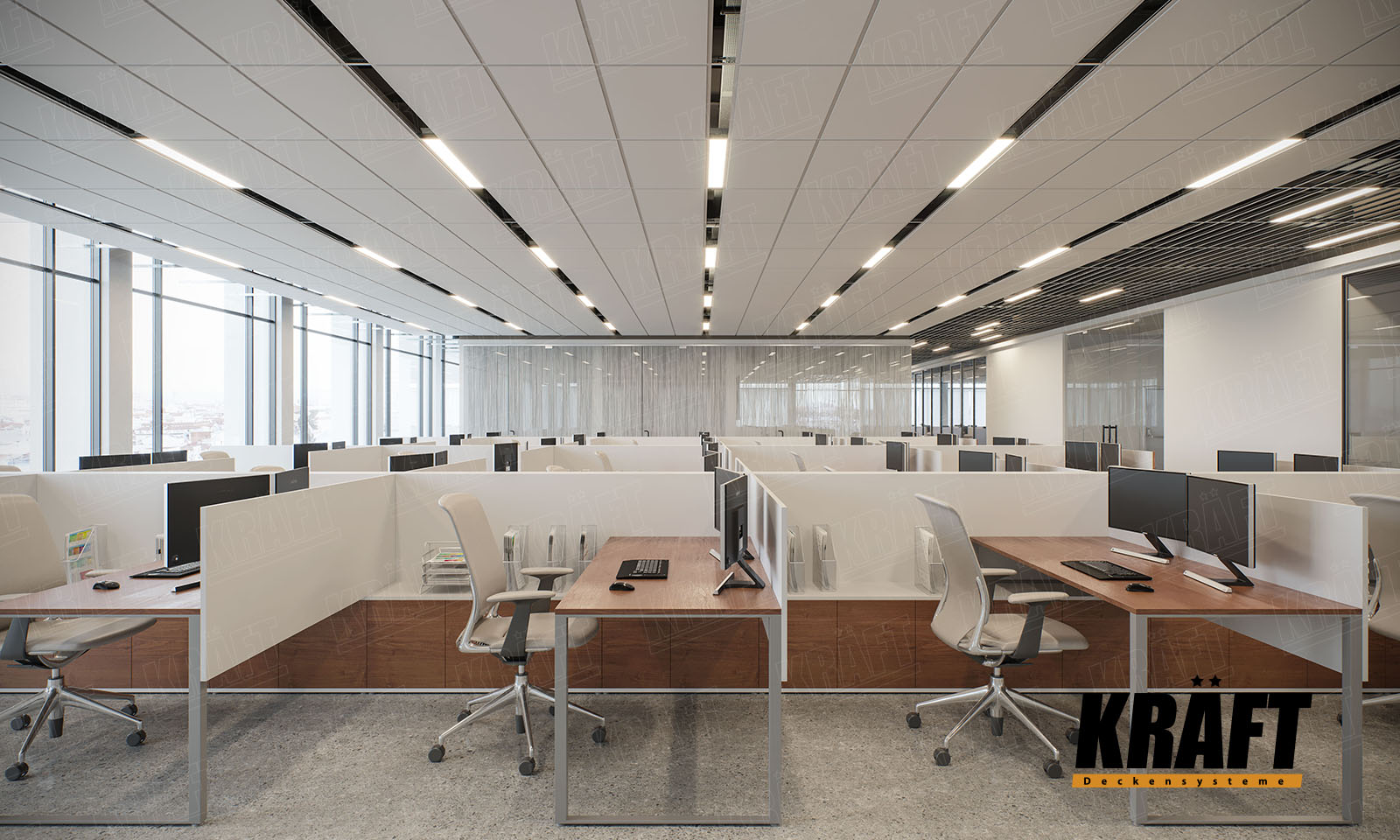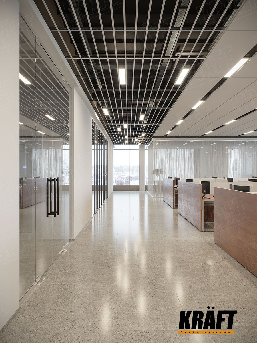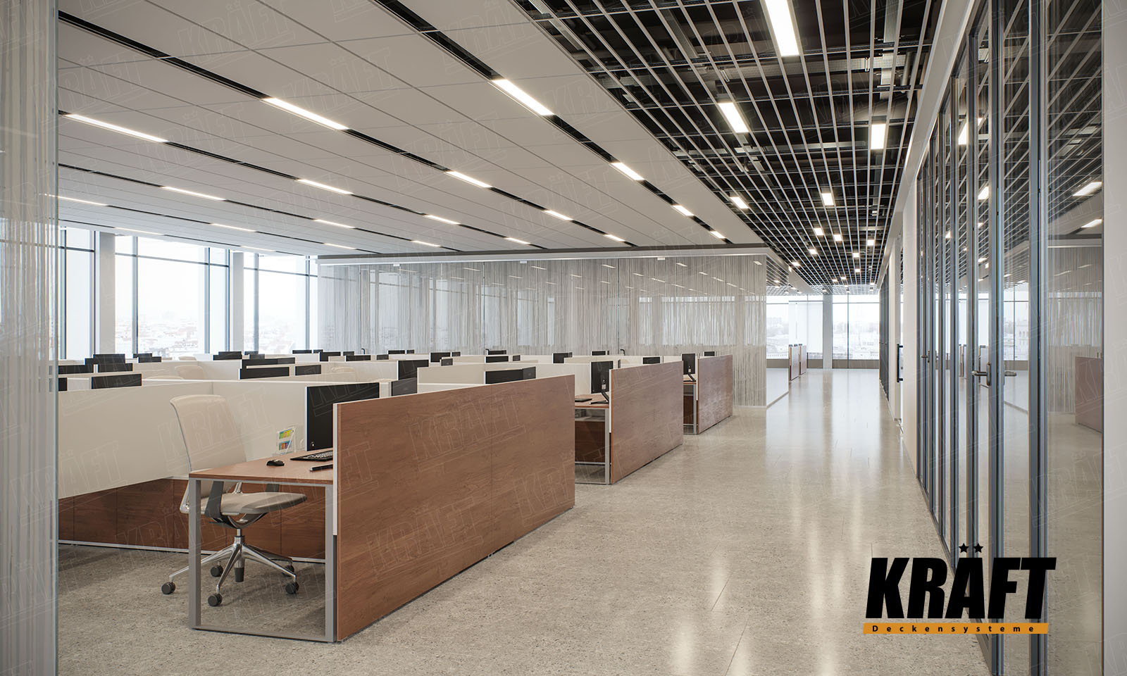 Combination suspended ceiling – cube-shaped rail, open cell, KRAFT Led