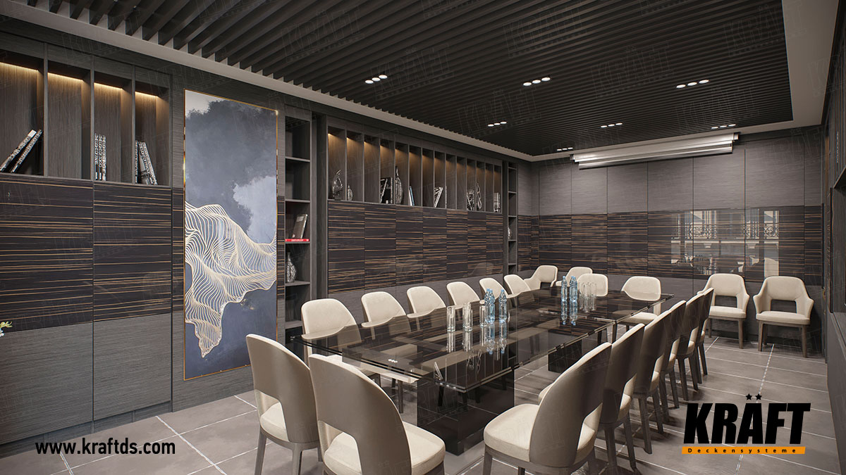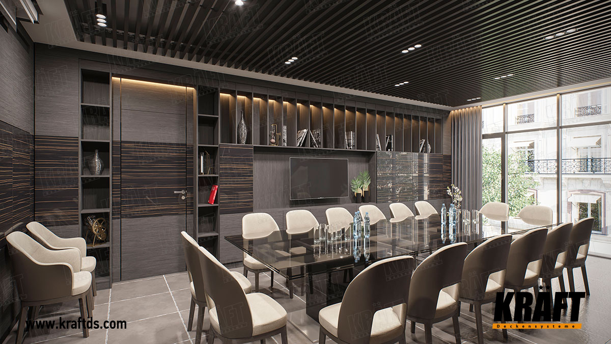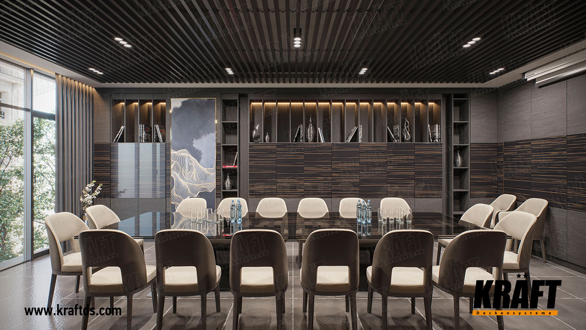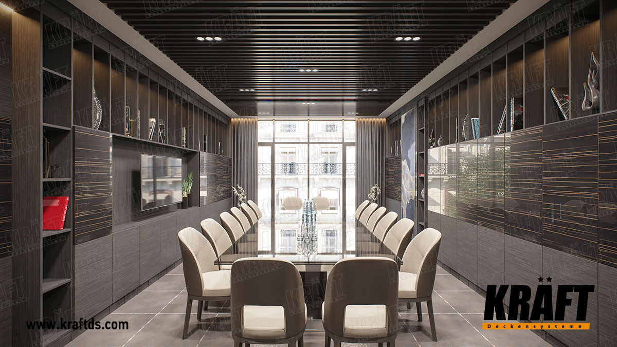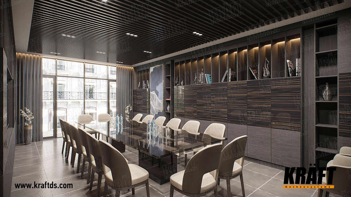If you want to impress your customers with the interior of your office, then KRAFT linear strip ceiling will be an excellent solution