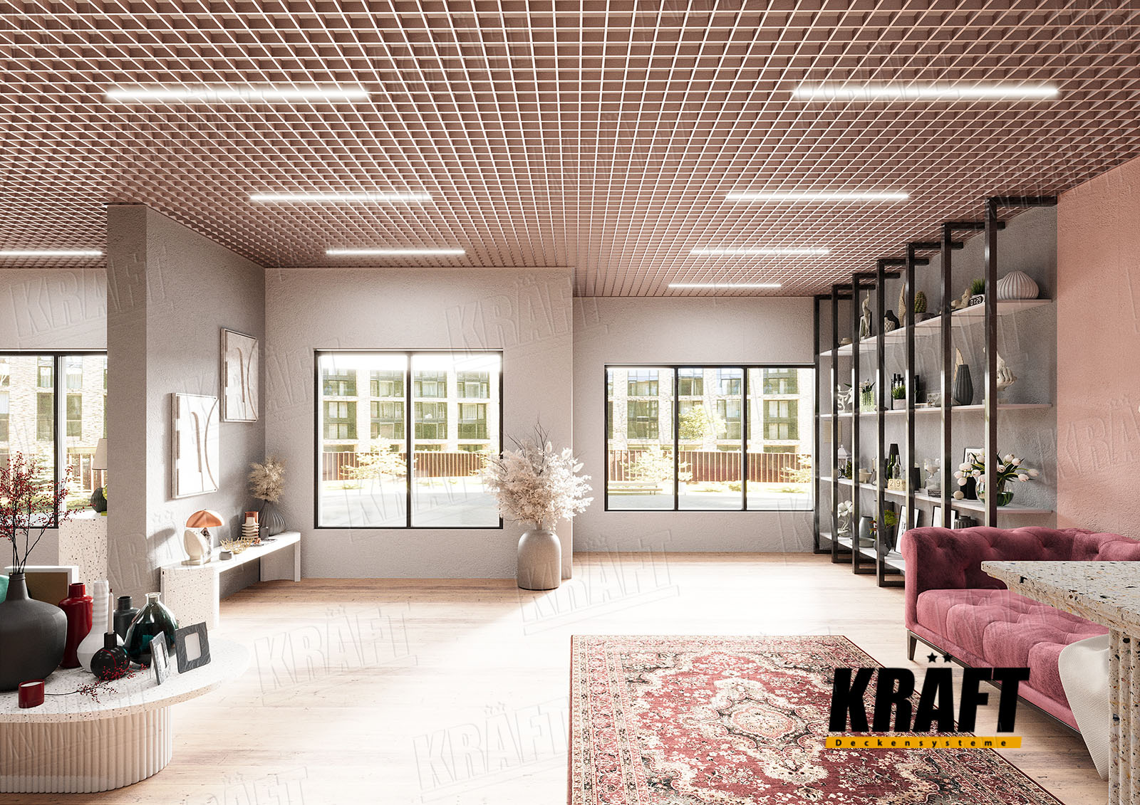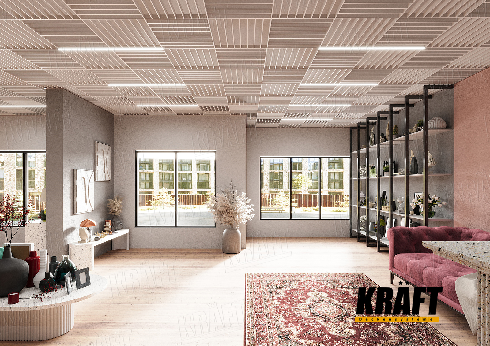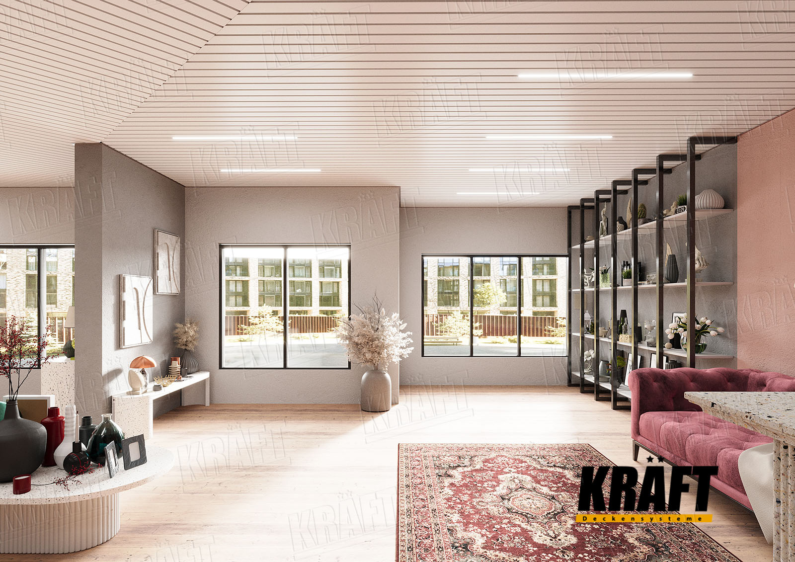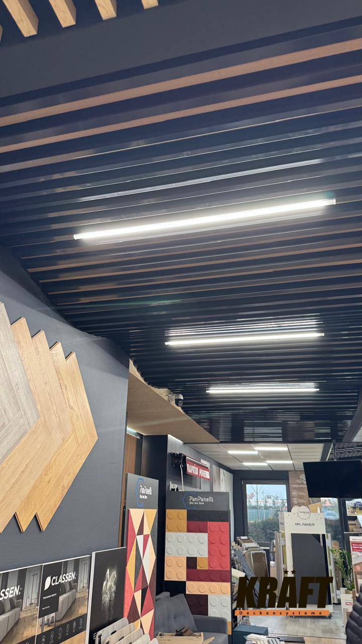 • If premium design and flexibility in space layout are important — KRAFT linear strip ceilings are ideal.