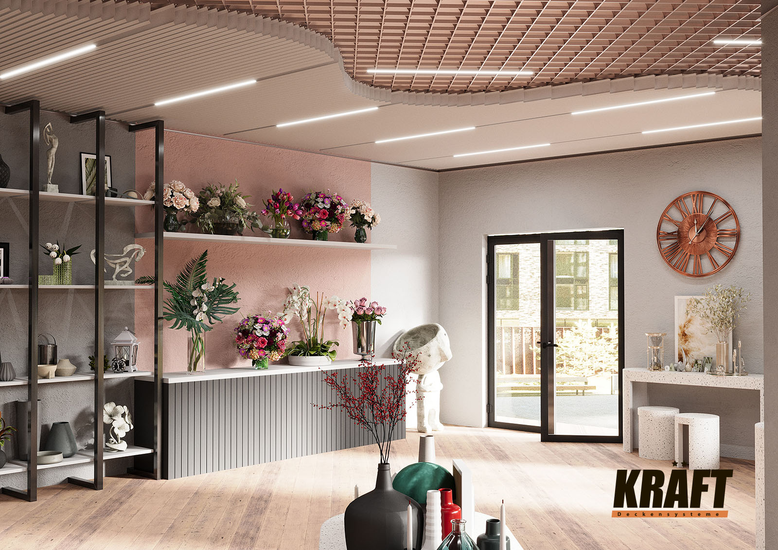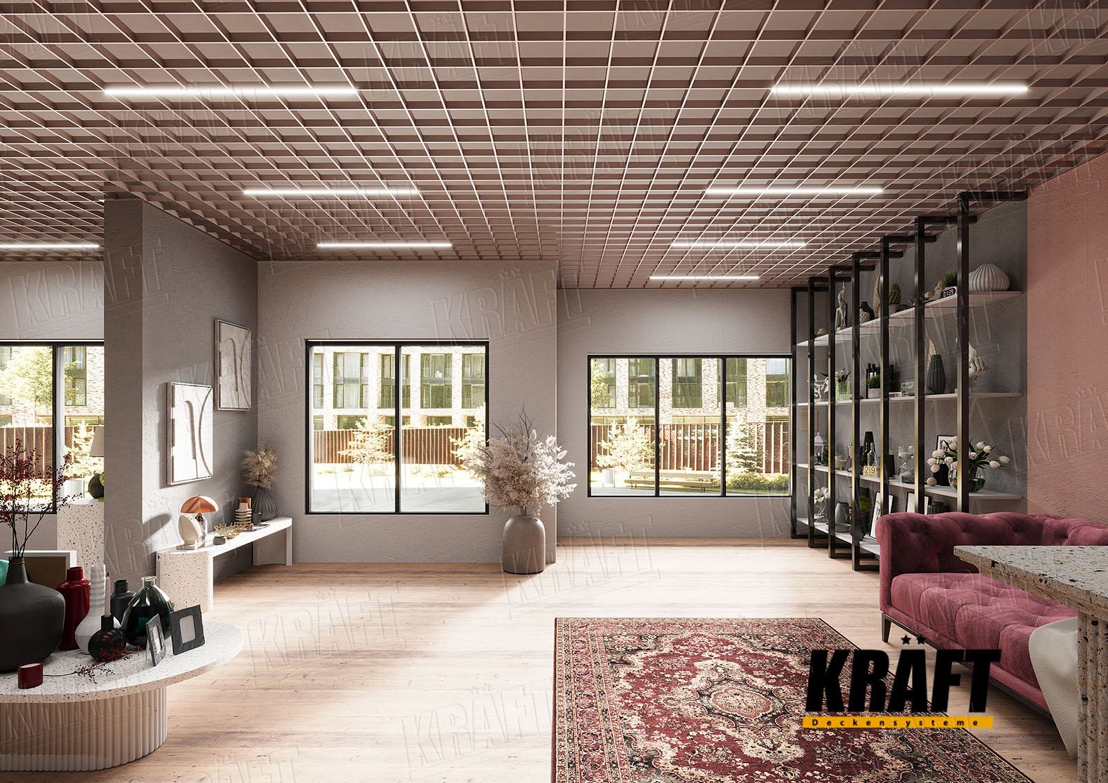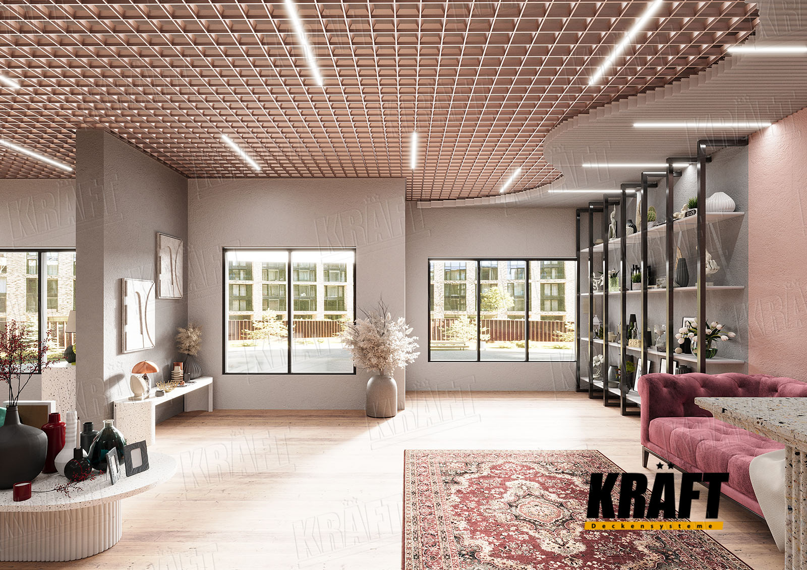 • If premium design and flexibility in space layout are important — KRAFT linear strip ceilings are ideal.