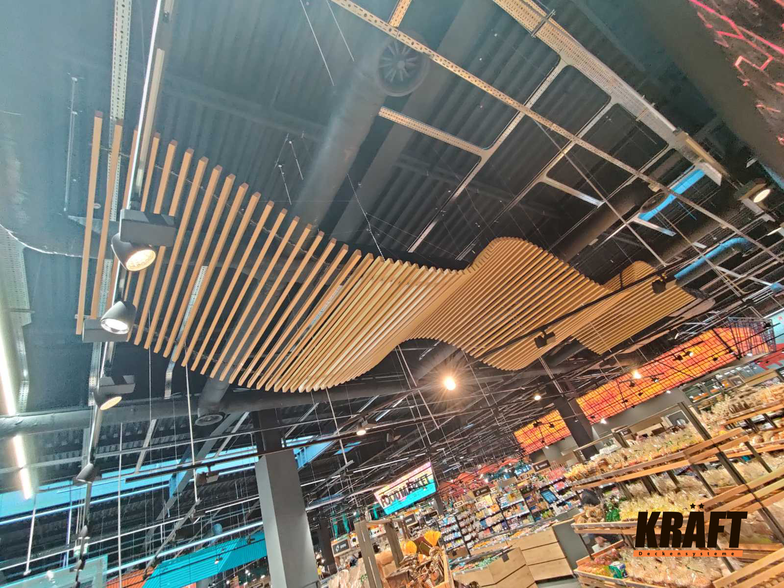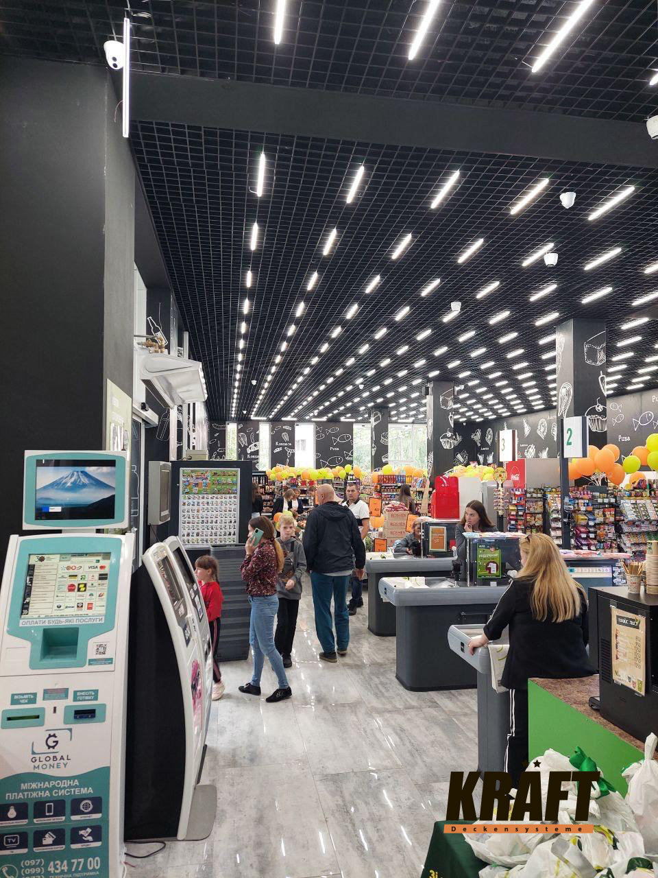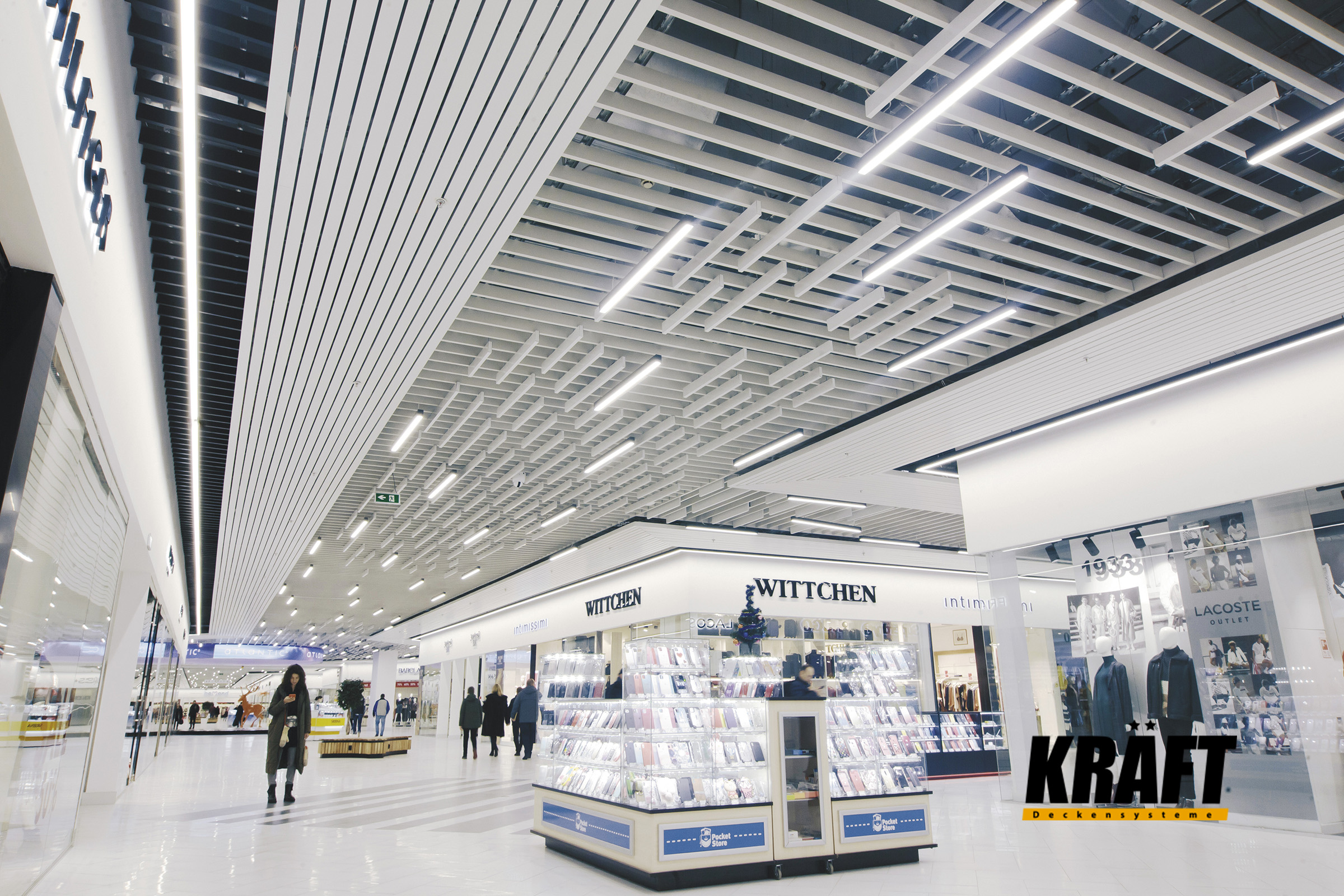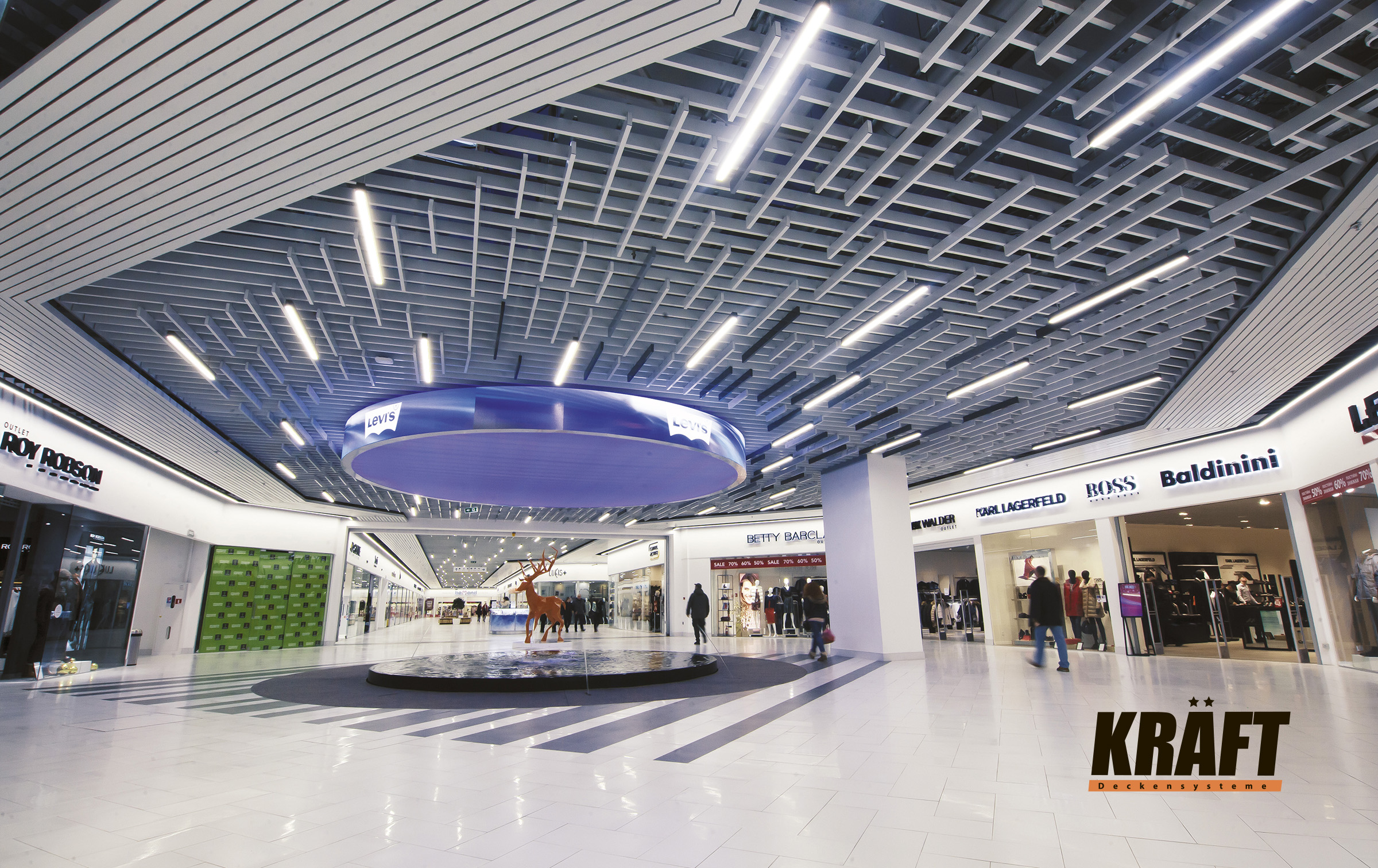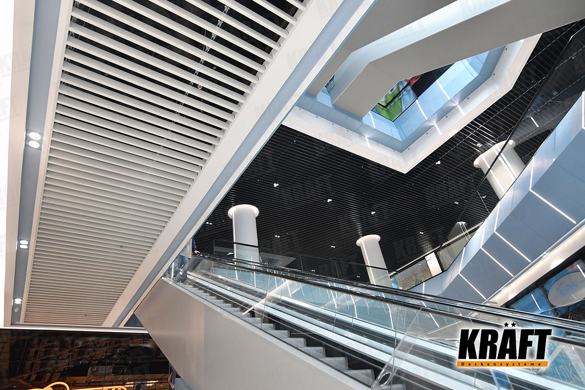 KRAFT open cell ceilings are an optimal solution for shops and shopping malls where functionality takes priority.