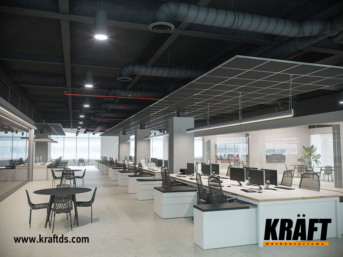 We produce three types of KRAFT LED luminaires - T-LED, G-LED and K-Led. T-LED is used for standard suspended ceilings with a T-grid ceiling system of profiles T-15 or T-24. G-LED is used for grilyato, slats and other types of suspended ceilings. K-LED are universal fixtures for all types of ceilings (not only suspended).