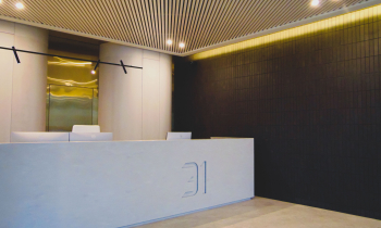 Etkileyici detaylardan biri, ortak kullanım alanlarındaki tavan dekorasyonu için KRAFT baffle asma tavanların kullanılmasıdır. Resepsiyondaki tavan, salonun aydınlık iç mekanı ile birleştiğinde benzersiz bir sofistike ve konfor atmosferi yaratan baffle asma tavan panelleriyle oluşturulmuştur.