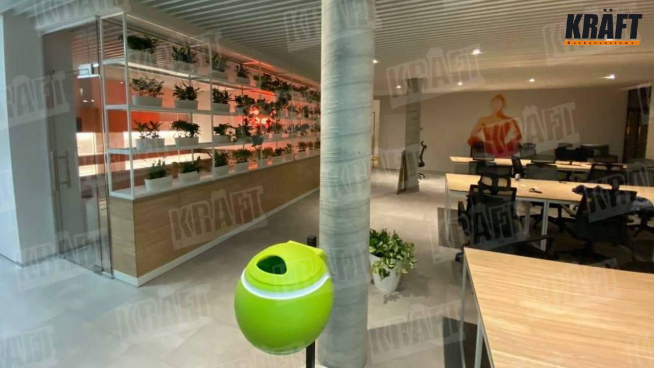 • ofis planında öne çıkan mobilya ve cam bölmelerle uyum sağladı.