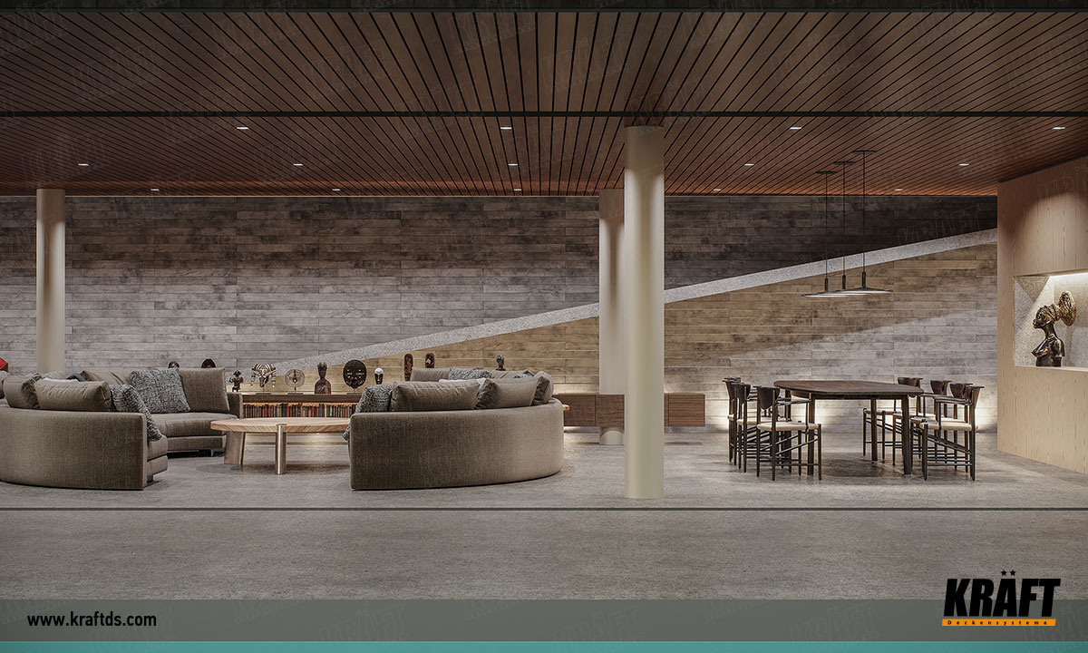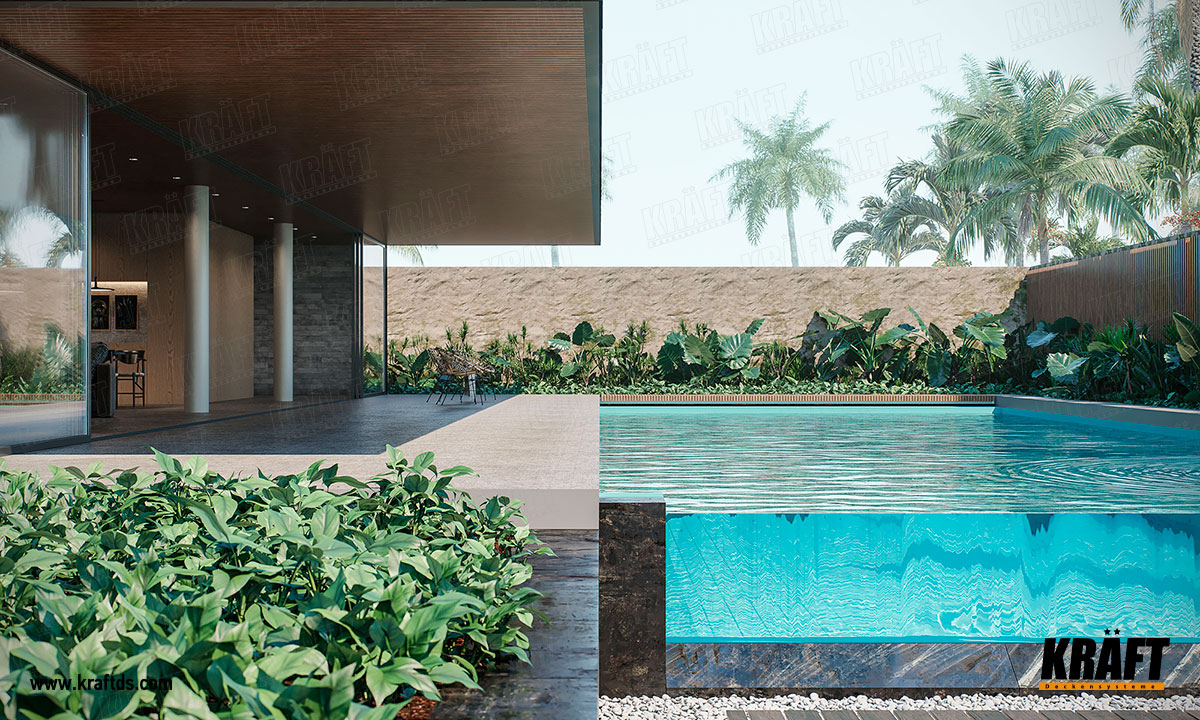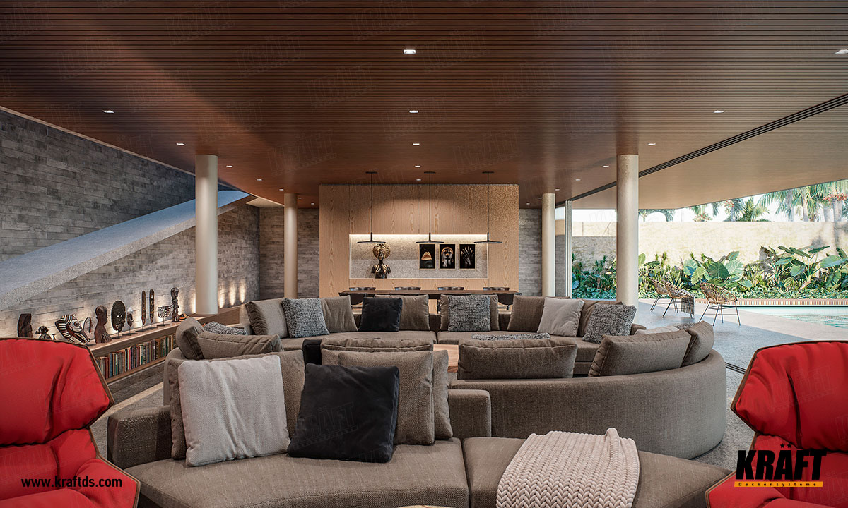 Рейкова стеля KRAFT в зоні відпочинку з басейном (+ 5 фото)