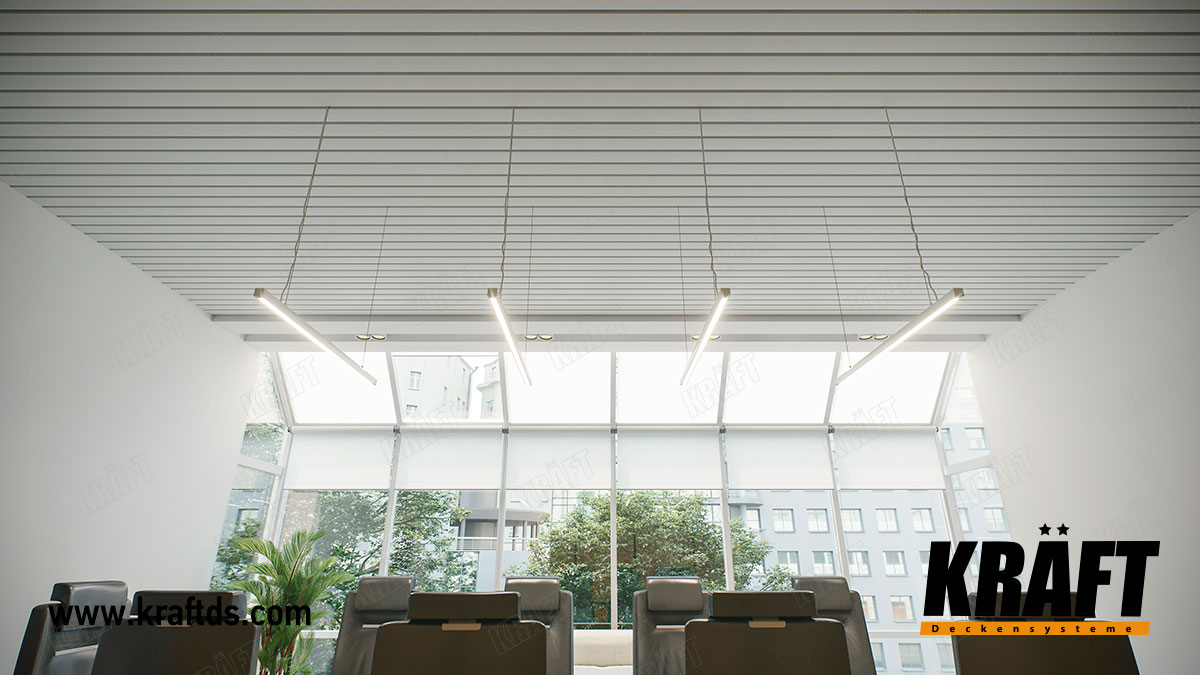 При розрахунку освітлення слід враховувати норми освітленості робочої поверхні для кожного приміщення. Растрові світильники або LED-панелі встановлюються на рівні підвісної стелі - безпосередньо в конструкцію з Т-профілю. Світильники KRAFT K-Led можна встановити на будь-якій відстані від стелі. Тому навіть при однакових параметрах світлового потоку, світильник, що висить нижче дає більш високий рівень освітленості. Тому для освітлення однакової площі світильників KRAFT K-Led потрібно менше, ніж звичайних.