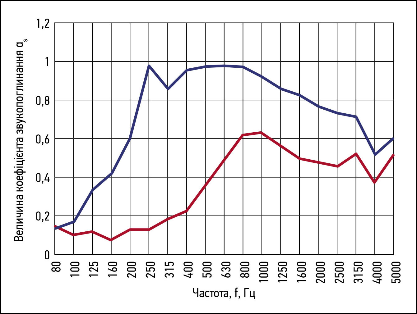 ревербераційний коефіцієнт звукопоглинання при заповненні повітряного проміжку за панелями ватою Isover Premium 50 мм